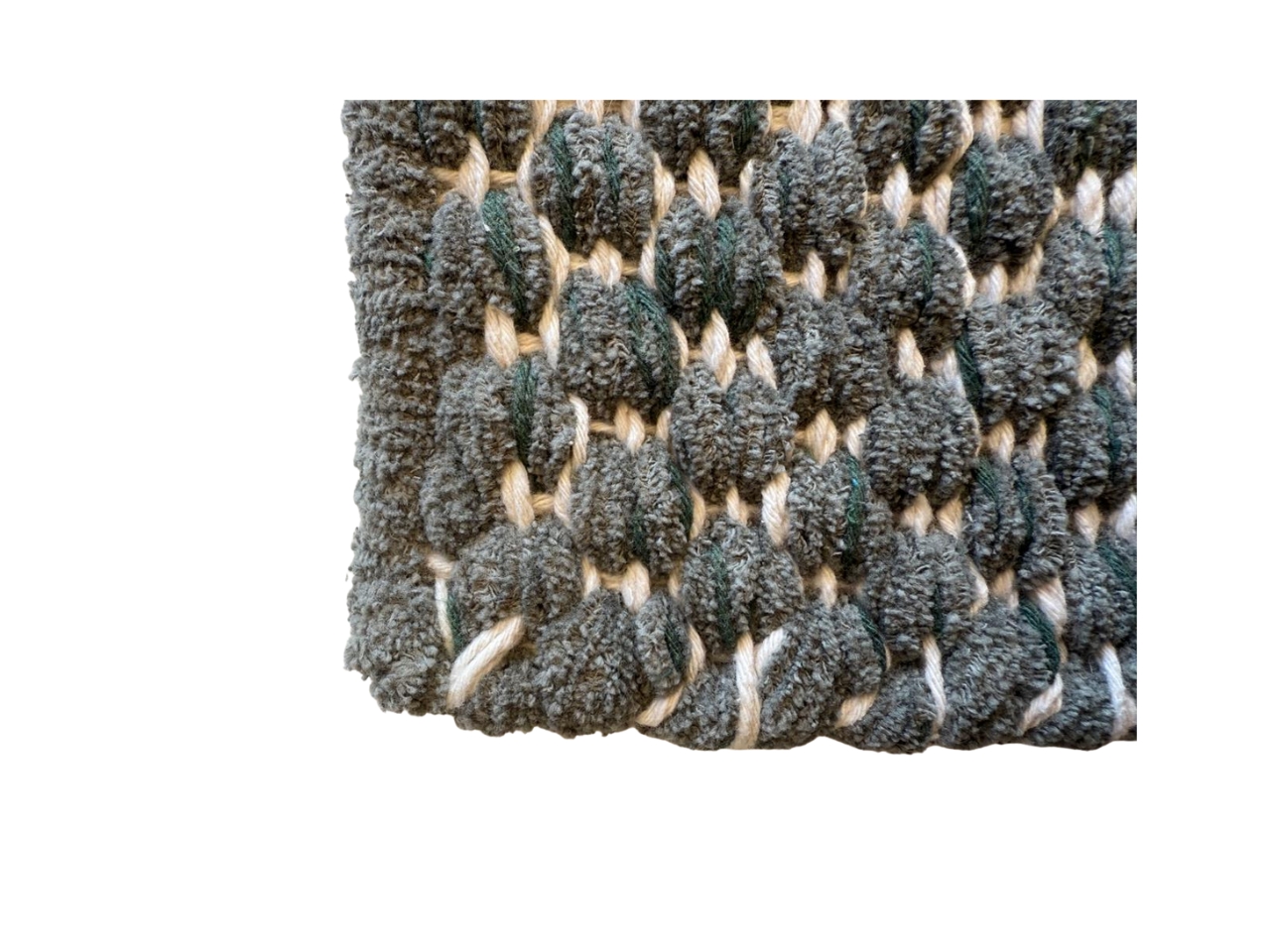 O Tapete Musgo Macio, feito de algodão e chenille, combina um verde acolhedor com um toque suave e aveludado, ideal para ambientes que pedem conforto e elegância natural.